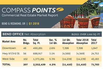 Compass Commercial Real Estate Services has released its fourth-quarter 2017 market survey results with the 2017 summary / 2018 forecast for Bend’s office, retail and
