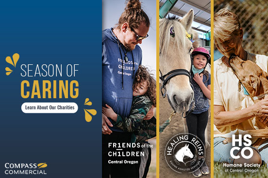 Compass Commercial Real Estate Services is proud to announce three new charities for the Compass Cares program: Healing Reins, the Humane Society of Central Oregon and Friends of the Children Central Oregon. These charities will receive cash donations each year during the two-year term, in addition to benefiting from the proceeds raised at the company’s Annual Client Appreciation event featuring a silent auction.