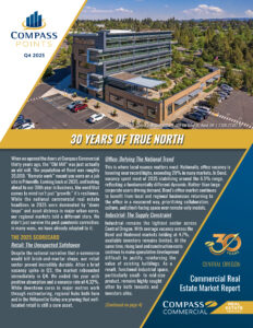 To view the complete report with vacancy and absorption graphs, notable transactions and imagery, sign up to receive our quarterly publication at https://www.compasscommercial.com/POINTS or call (541) 383-2444.