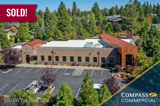 Brokers Graham Dent and Russell Huntamer, CCIM with Compass Commercial Real Estate Services represented the seller, Marine Drive Apartments, LLC, in the sale of 686 NW York Drive in Bend. The 6,778 SF office building on 0.56 acres sold for $2,450,000.