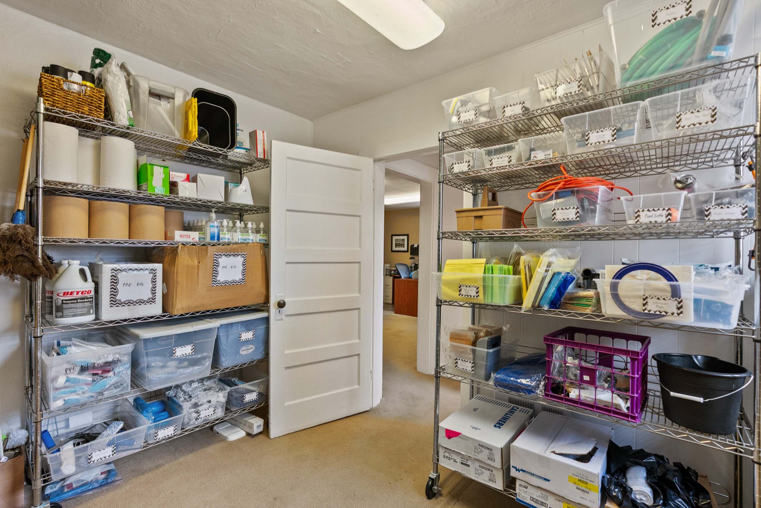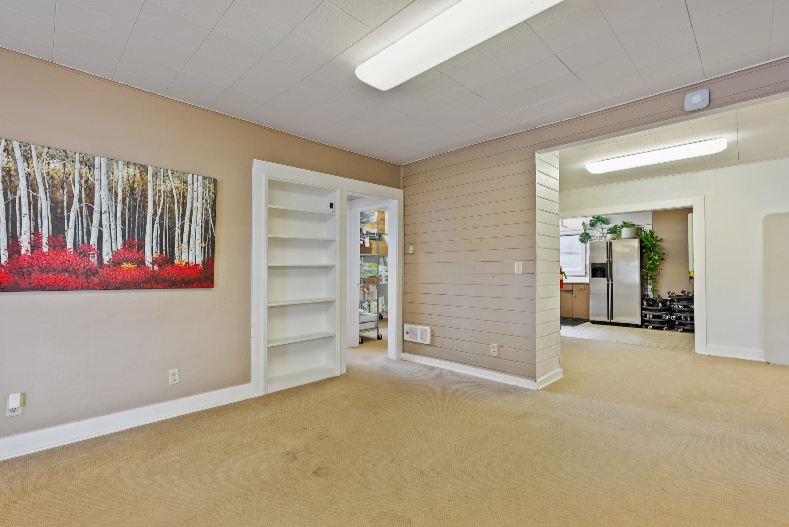 - Interior includes reception, two private offices, large work area, two restrooms and kitchen