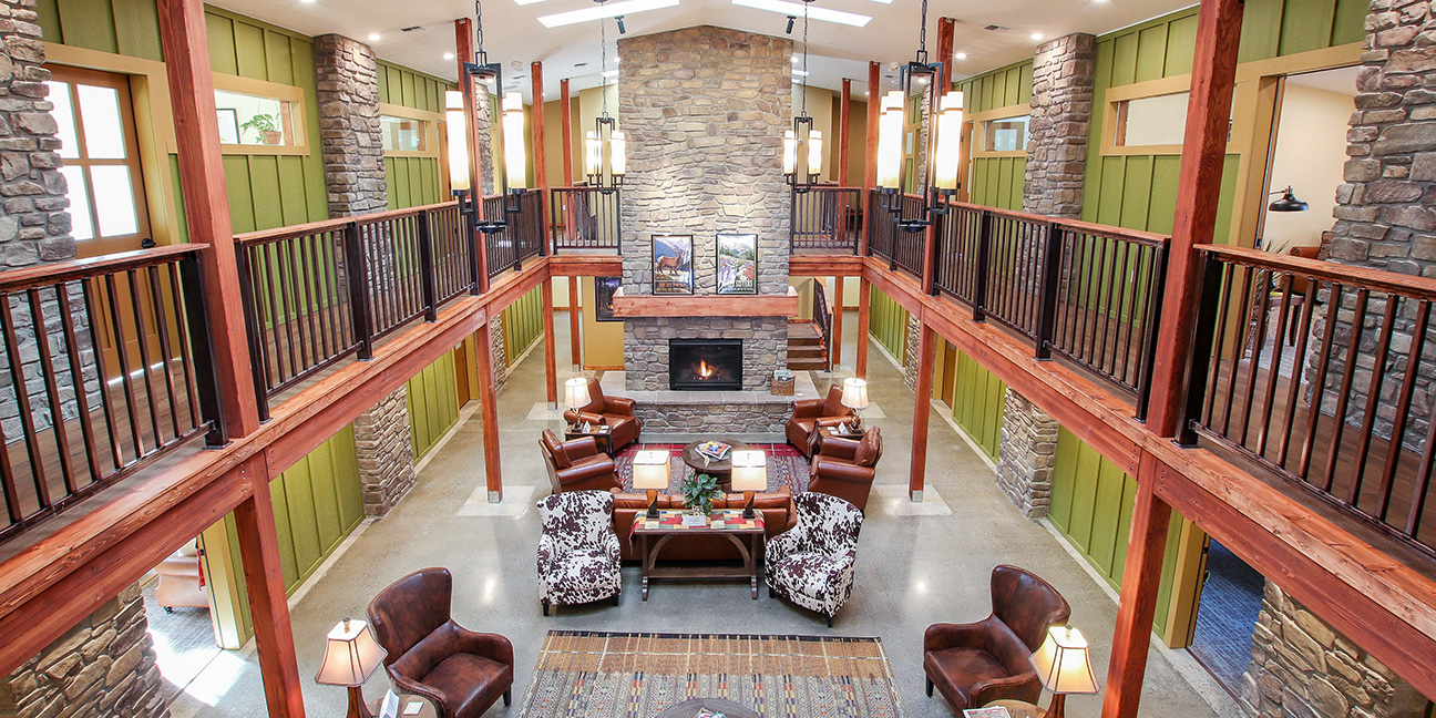 The team added skylights to create more natural light in darker areas. New fireplaces were installed in the common area/break room and staff lounge, enhancing comfort. Power was reworked throughout the building, ensuring access to electrical outlets and systems without the need for additional power supply.