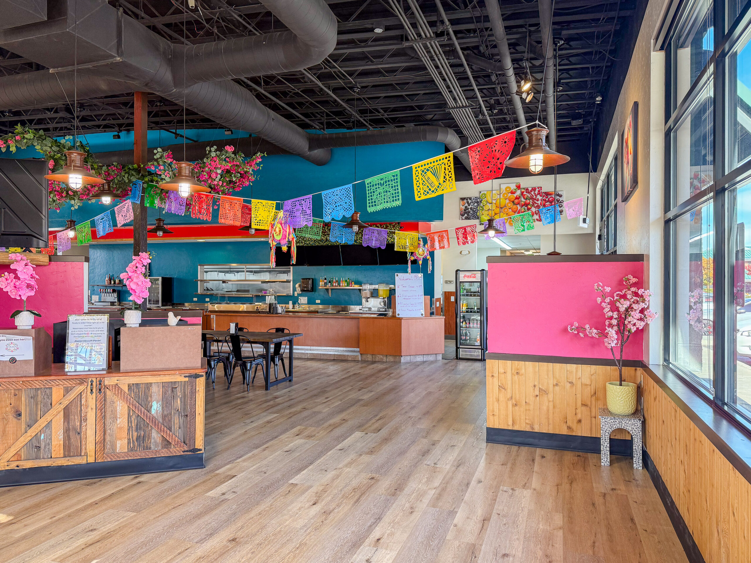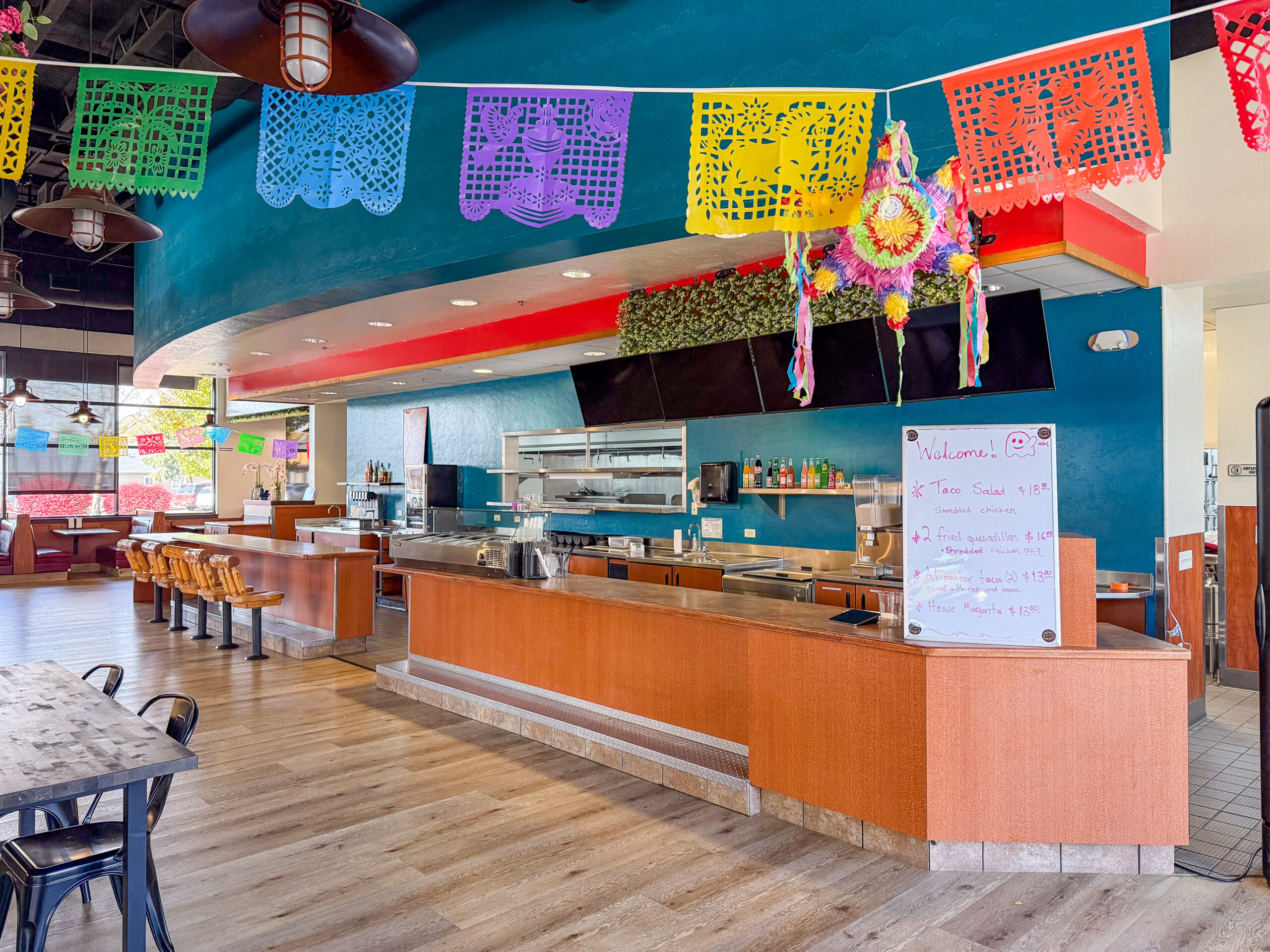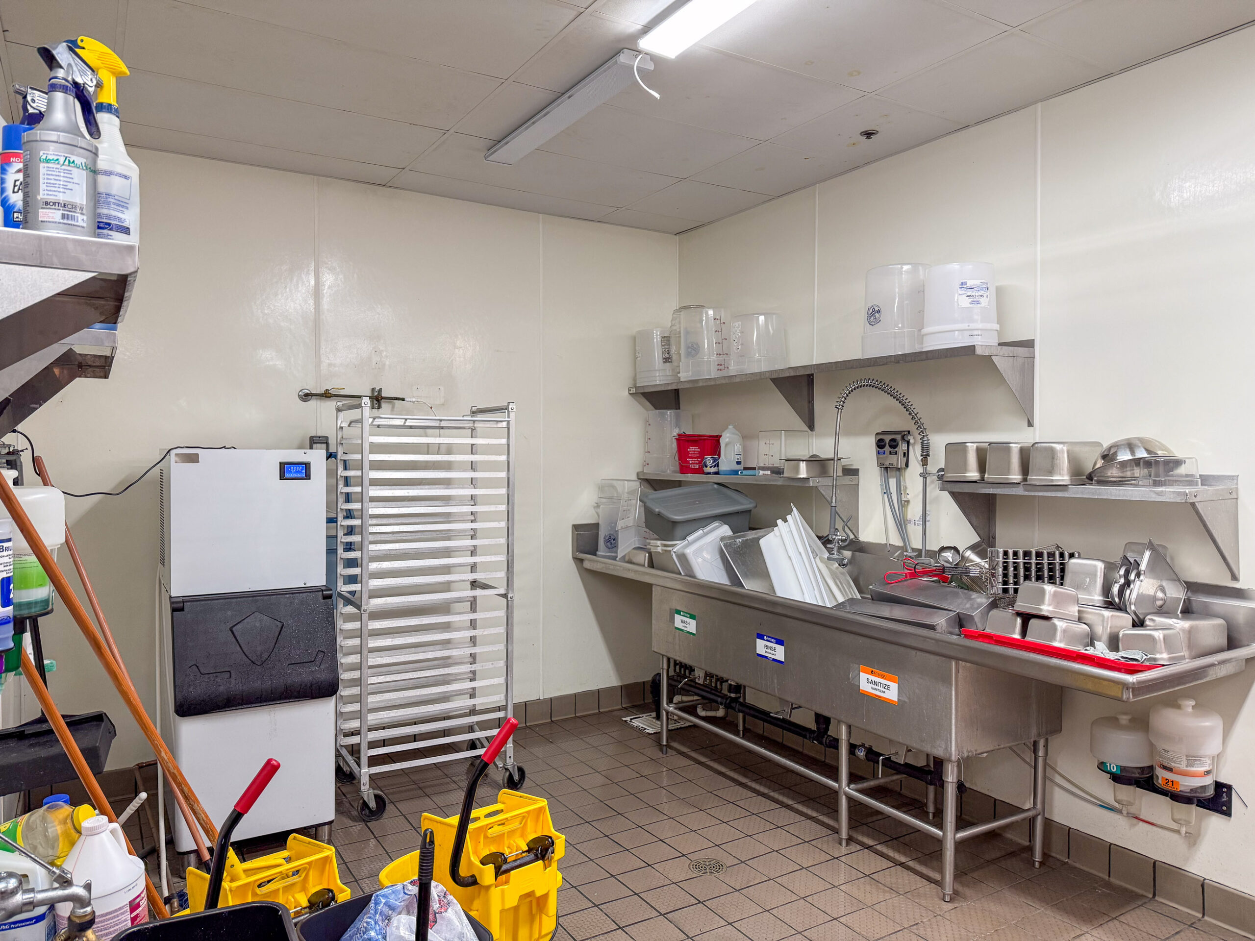 - Build-out includes main dining room, counter service bar, banquet room, private restrooms, and a large commercial kitchen with 23’ hood and walk-in cooler